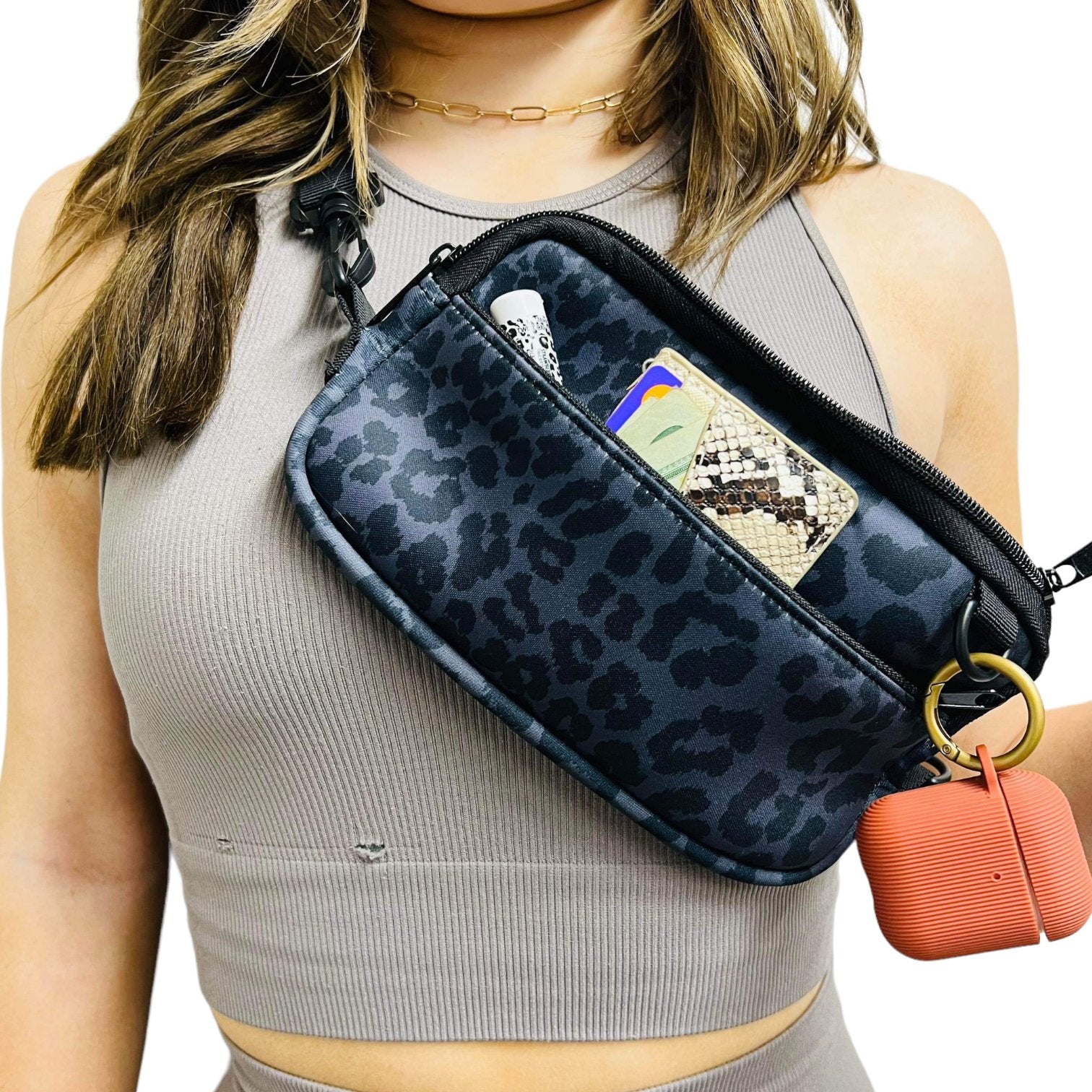 Black Leopard Cross Body Purse