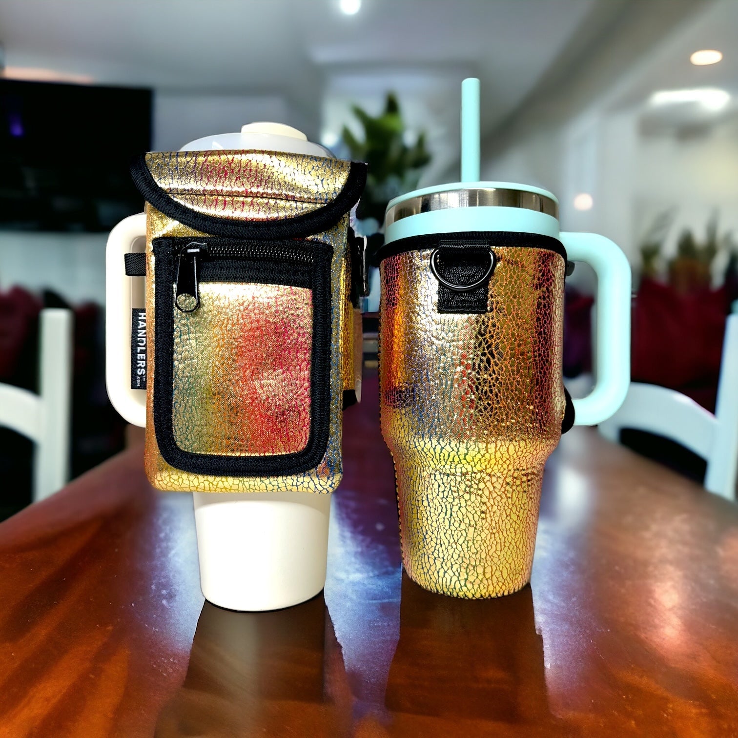 Glimmering Gold 25-35oz Tumbler With Handle Sleeve