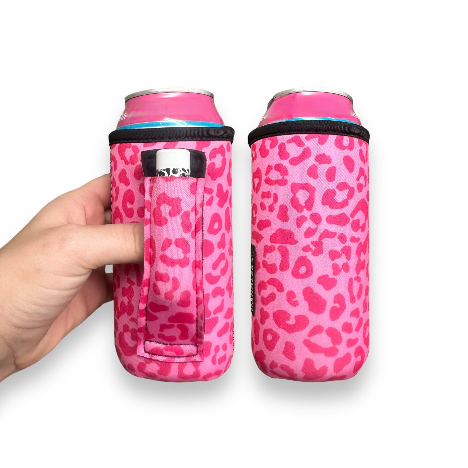 These patent pending Handlers™ are a little different than your average can sleeve. They have an easy to grip handle built right into the sleeve to help redistribute the weight. There is also an awesome pocket inside the reinforced handle to help keep your small essentials at bay. Easily slide your lip balm or other small items inside. These Handlers™ will help keep your drink cold, your hands dry and you won't have to ask someone to hold your drink again!
