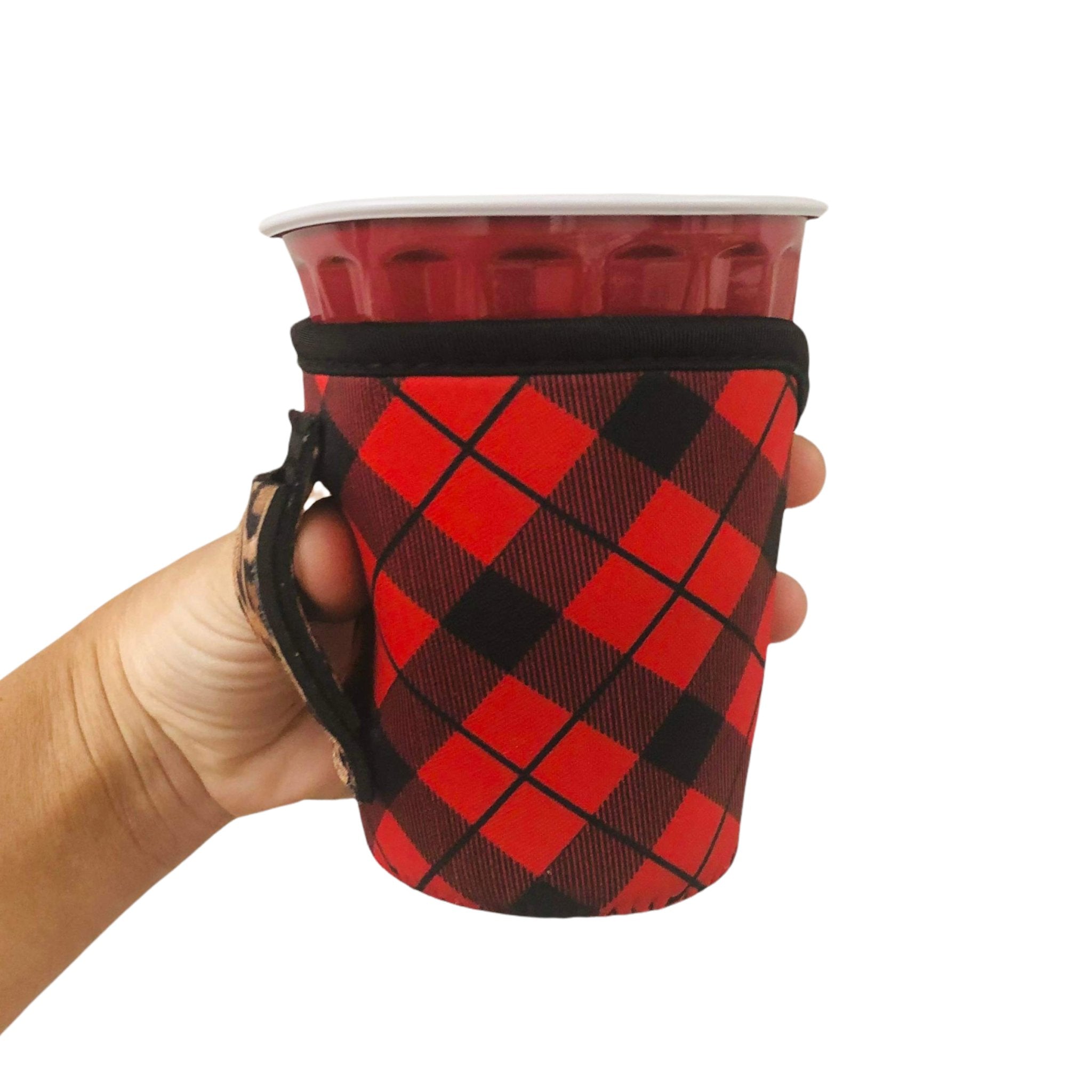 Red Plaid W/ Leopard 12oz Wine Tumbler Handler