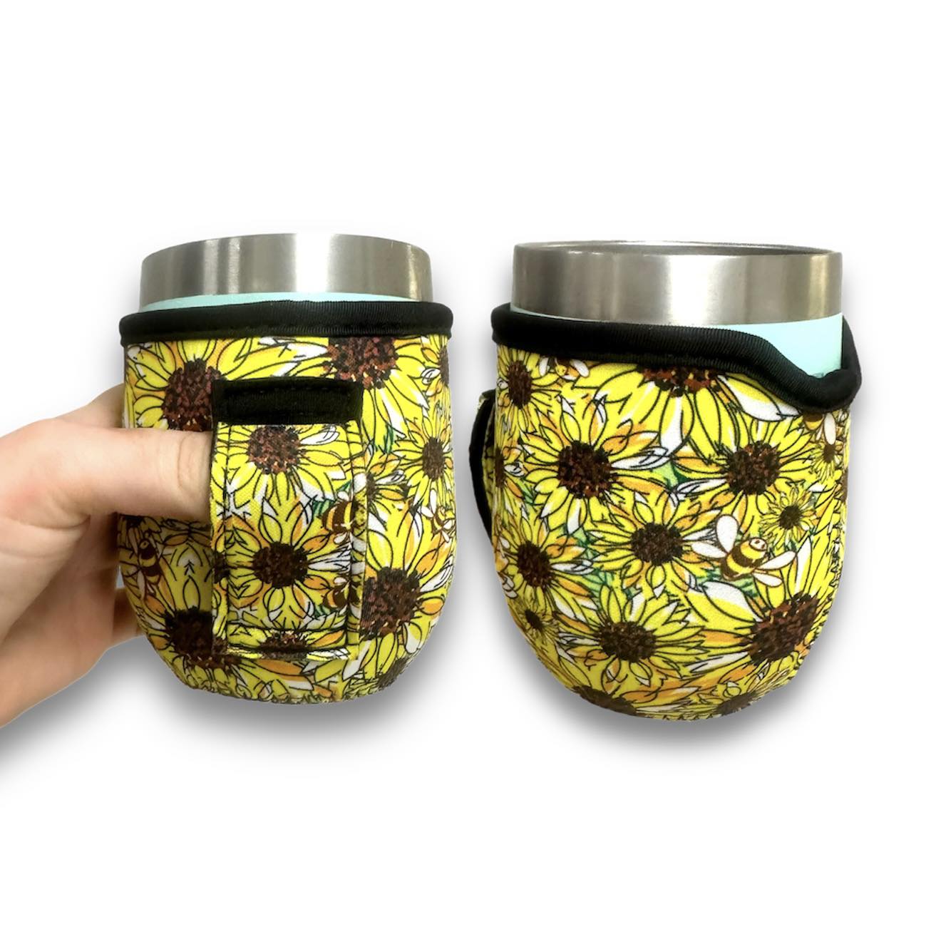 Not only are these super cute, they are amazing quality, water resistant, and machine washable—perfect for everyday sips, patio lounging, tailgates, and on-the-go adventures. The flexible, easy-on sleeve helps reduce slips and condensation while keeping hands dry, and it even helps little ones hold onto their drinks!